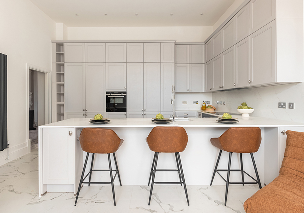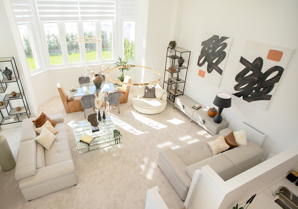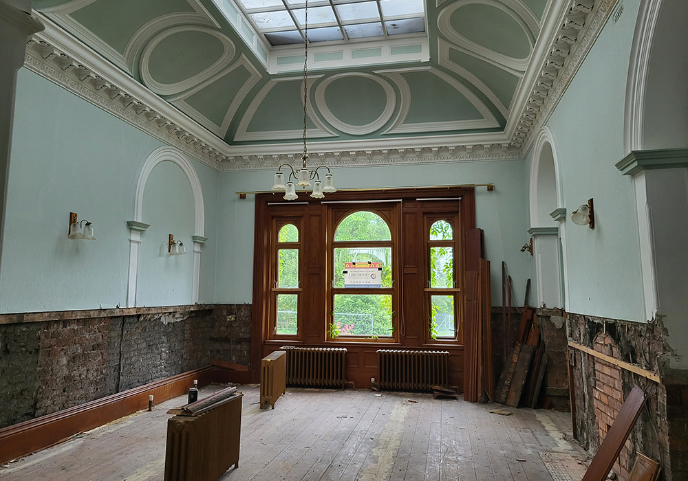 Our plans will see the main house converted to create four grand apartments, and original features, like a sweeping staircase and ornate ceiling, will be retained. The views from the large windows at the front of the house onto the gardens are glorious.