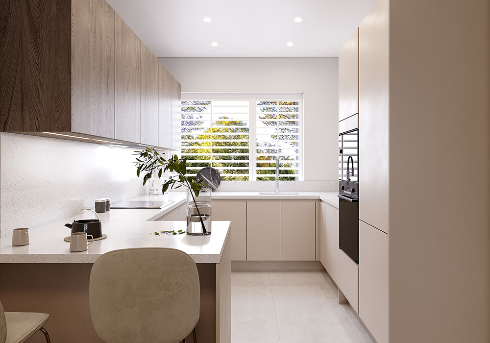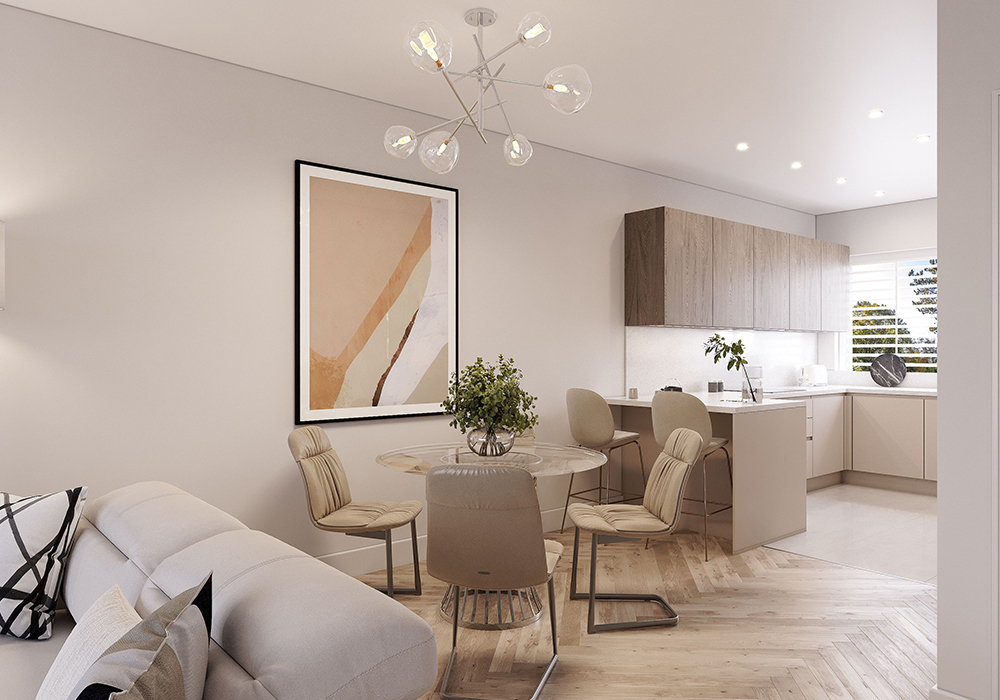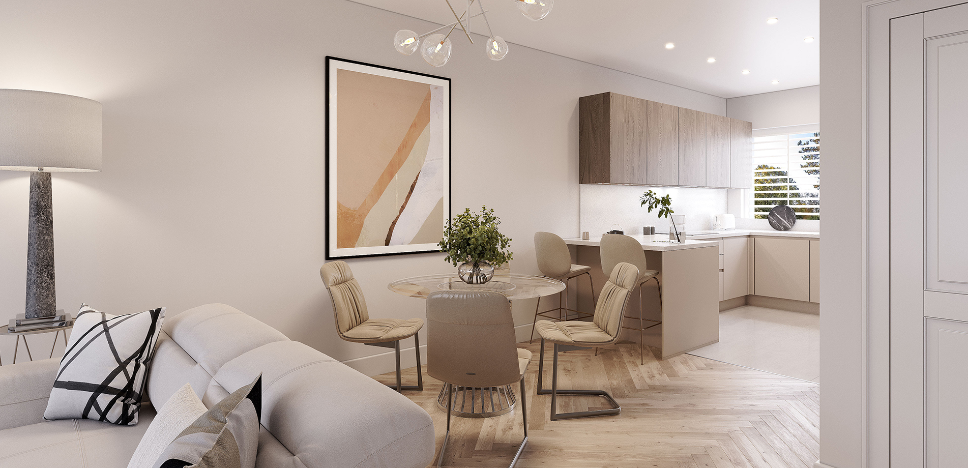 Generous living/dining room featuring sliding doors leading out onto the private garden. German engineered fitted kitchen with feature breakfast bar and integrated appliances.