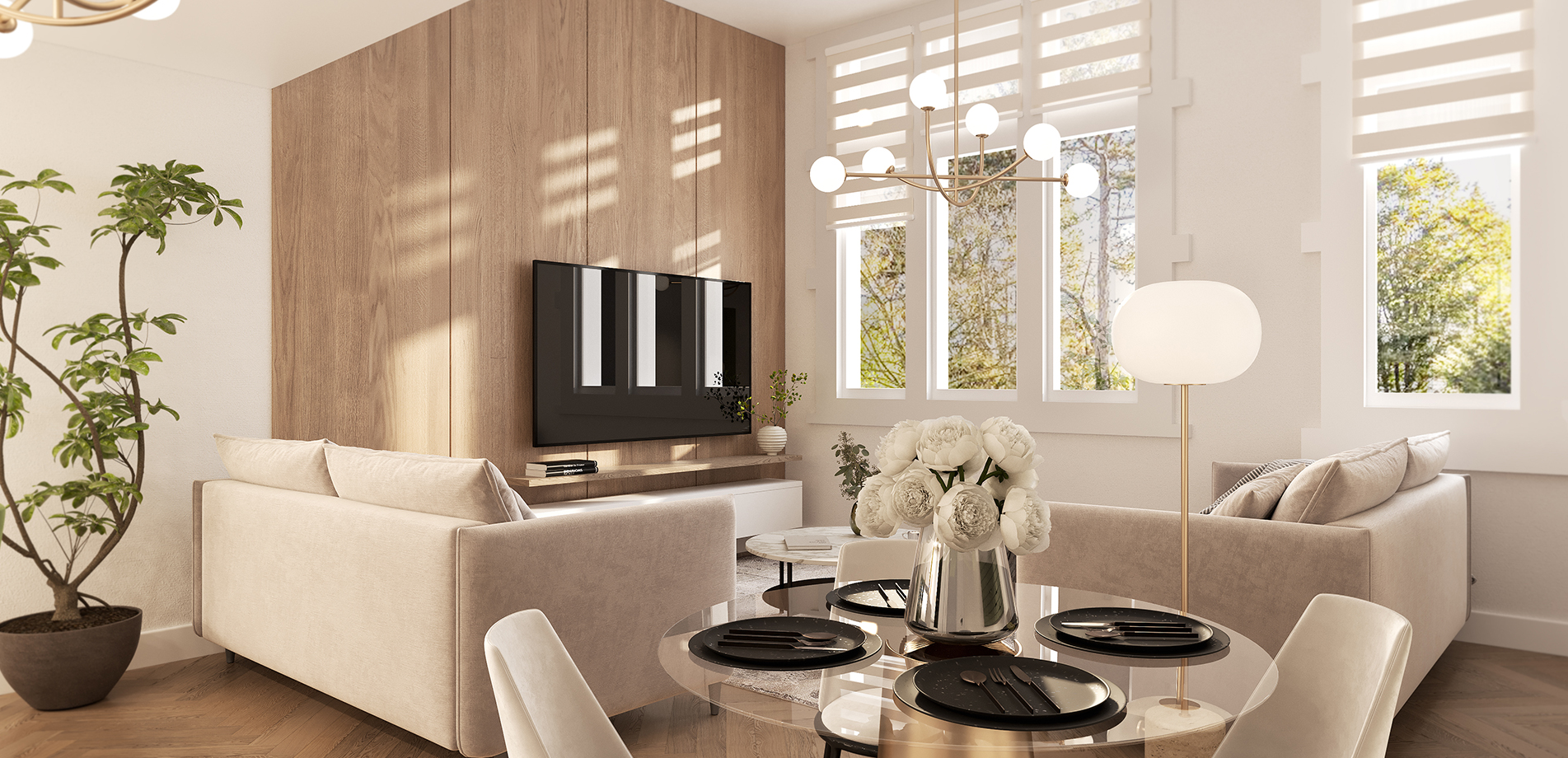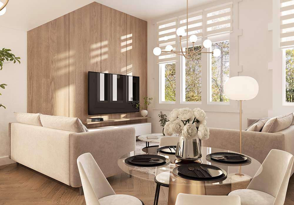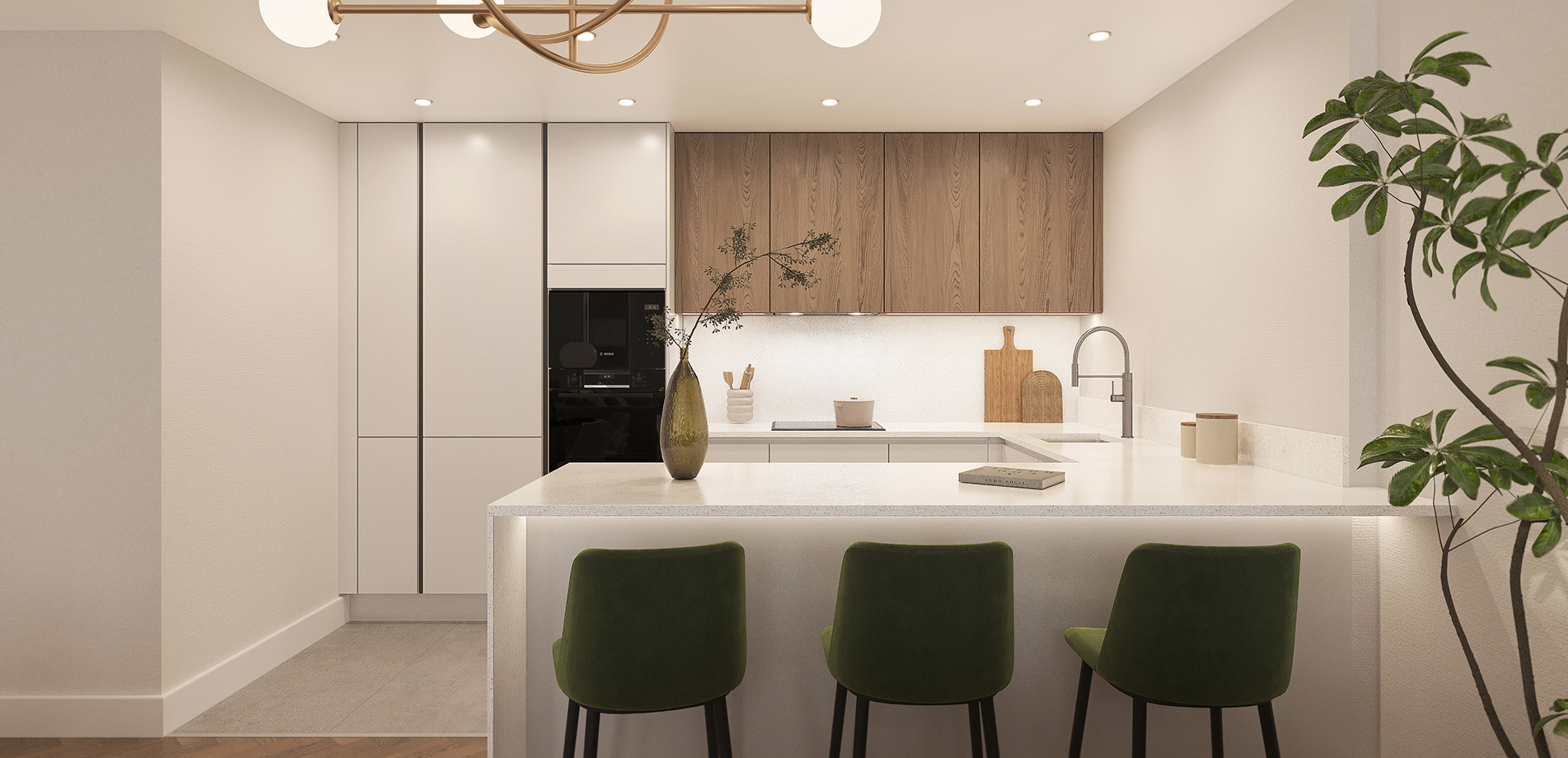 Light filled living/dining room with high specification German manufactured kitchen including integrated appliances and feature breakfast bar. Generous master bedroom complete with luxury en-suite.